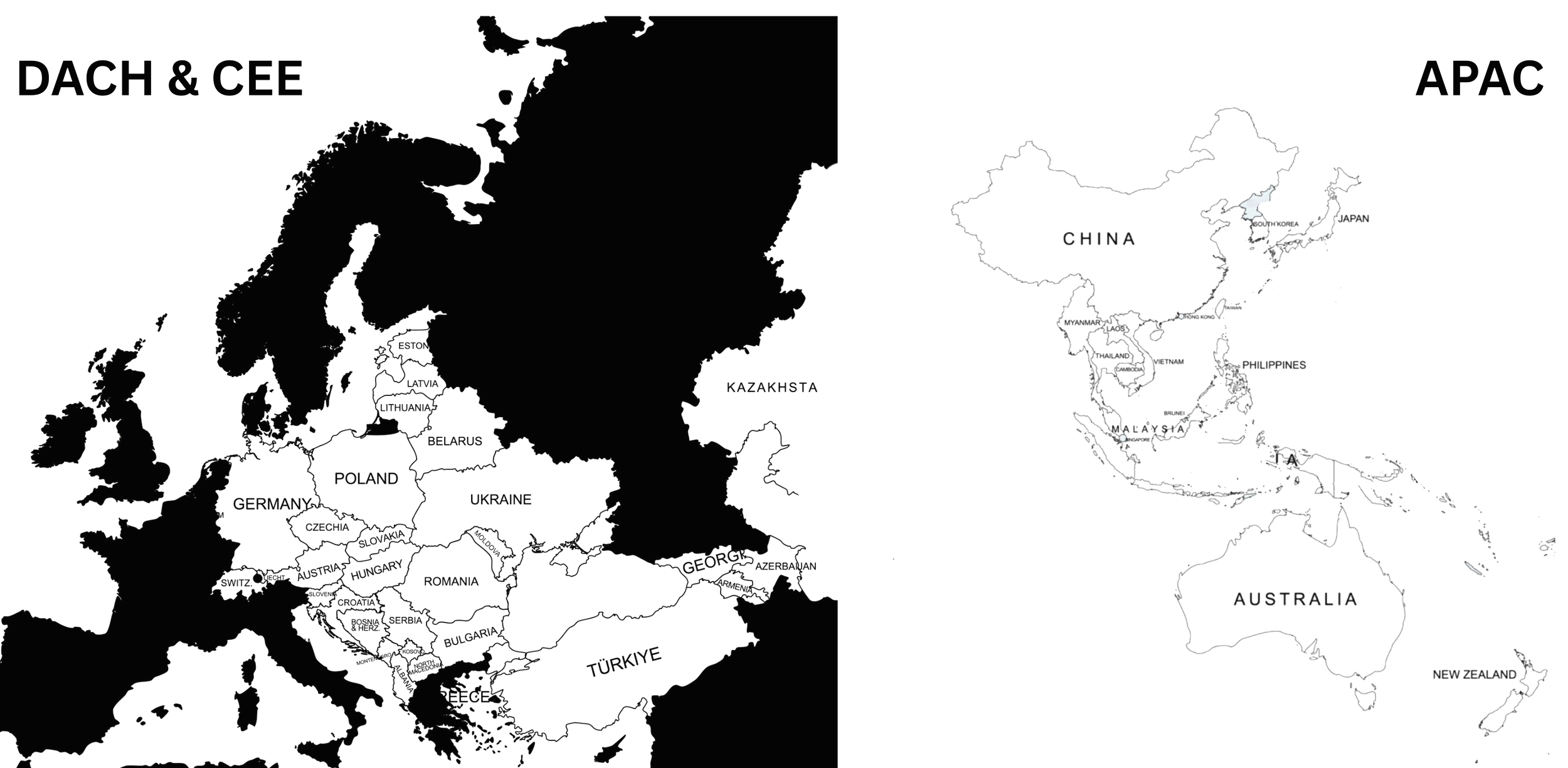 Regions We operate across key global regions with strong local expertise and long standing partnerships.DACHCentral & Eastern EuropeAsia-PacificOceaniaWe don’t just enter markets we build them.